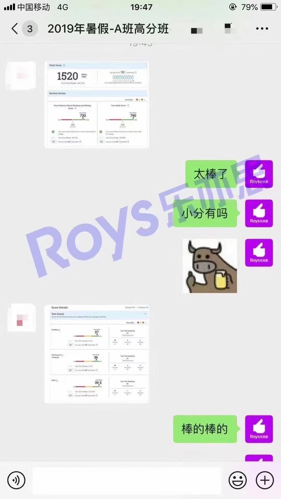 今天第3位我们Roys乐亦思8月高分员学是来美自高的W同学