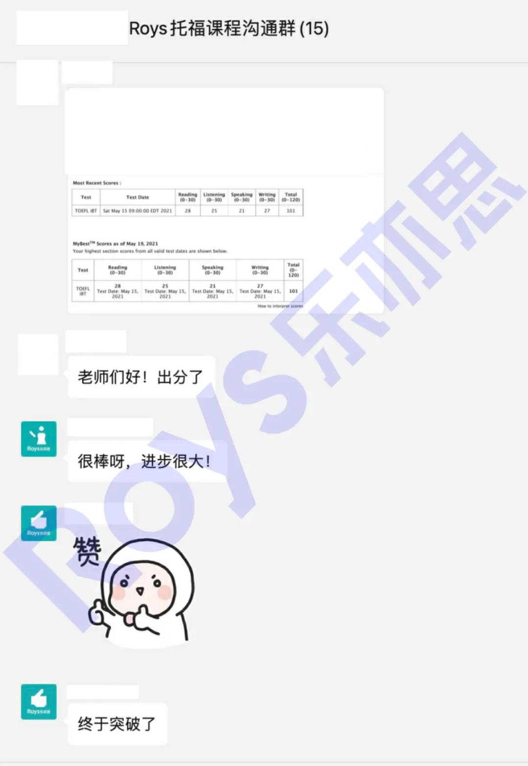Roys乐亦思托福课程学员实现46到68的突破,下一站争取更高分!