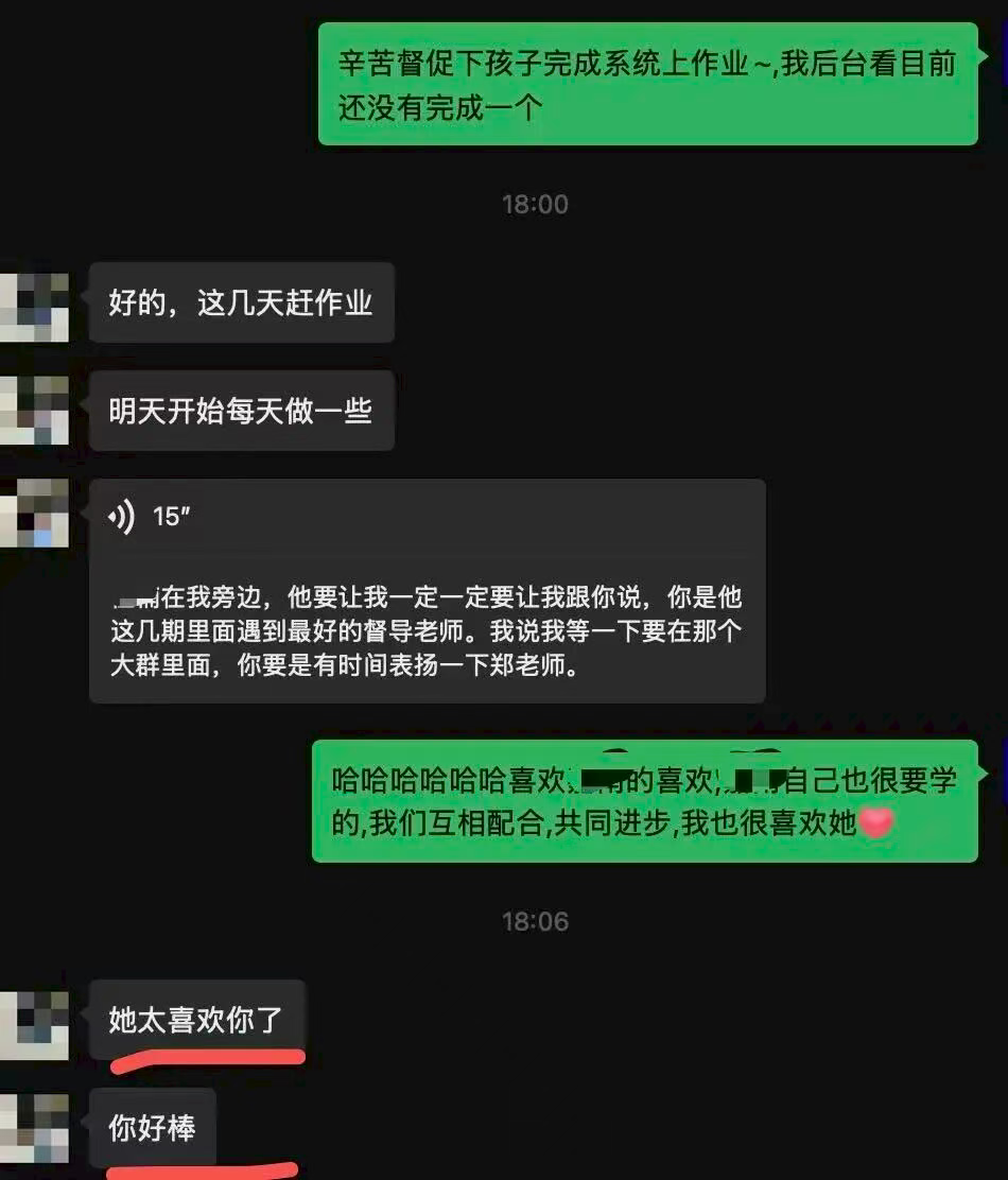 督导老师的每日任务布置、上课提醒,授课老师的专业教学、细致关怀,每一项都让家长和孩子们感受到极致的服务。