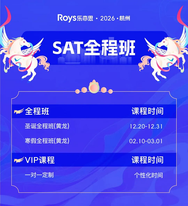 乐亦思也专门为想在圣诞寒假冲刺的同学开设了王牌课程——全程班。这个班可是目前唯一一个由Roy老师亲授的课程哦!它涵盖了从零基础到1550+的完整备考干货,能帮助“SAT全分数段”的学生系统性学习。