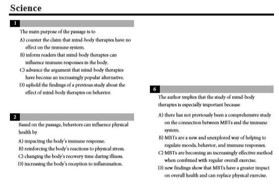 2016年SAT改革后,阅读总共5篇文章,文章固定为小说、历史、社科、自然科学4种类型,每篇文章后面出10-11道题。SAT阅读一直是很多同学提分的难点,平常的阅读练习成绩绩也时好时坏。对于阅读一直提不了分的同学,希望可以通过这篇阅读题型分析,帮助同学们找出阅读做题的问题。