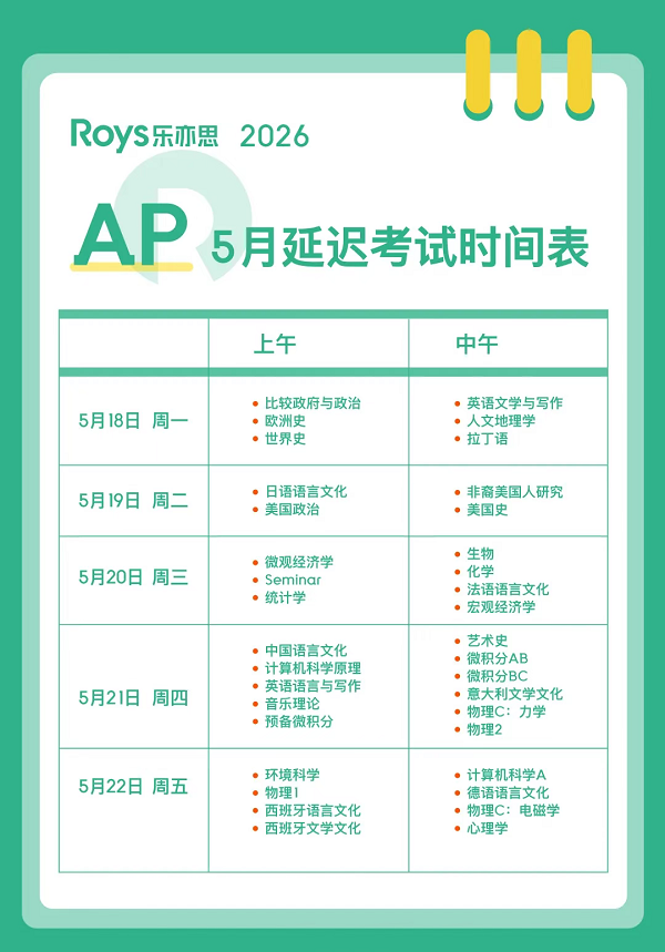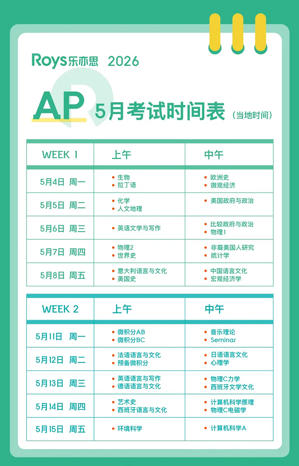 2026 AP考试重要信息
