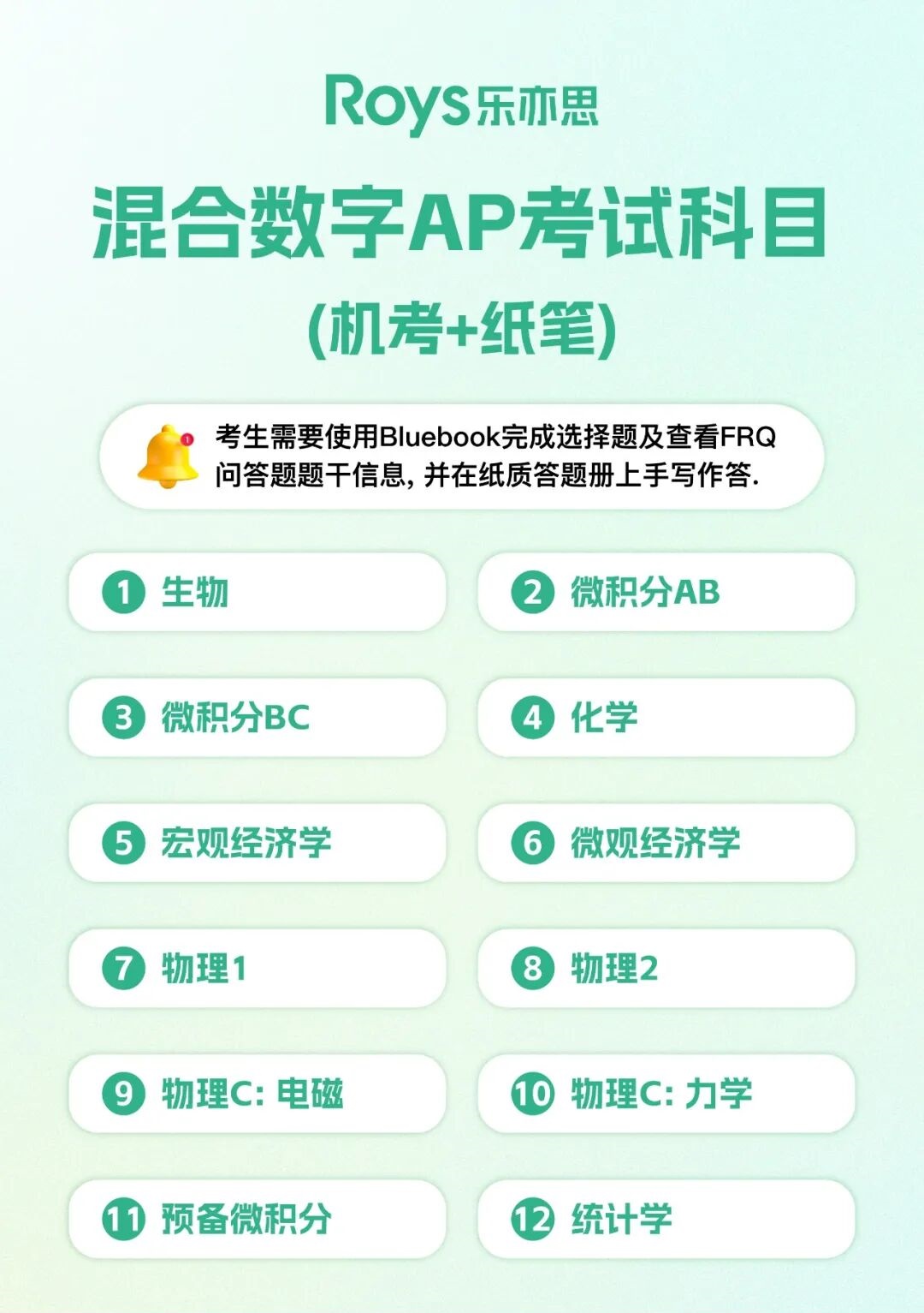 2026年AP考试继续推进数字化进程,部分科目已全面转为机考,部分科目则采用机考+纸笔混合形式。对于混合机考,考生需特别注意以下几点: