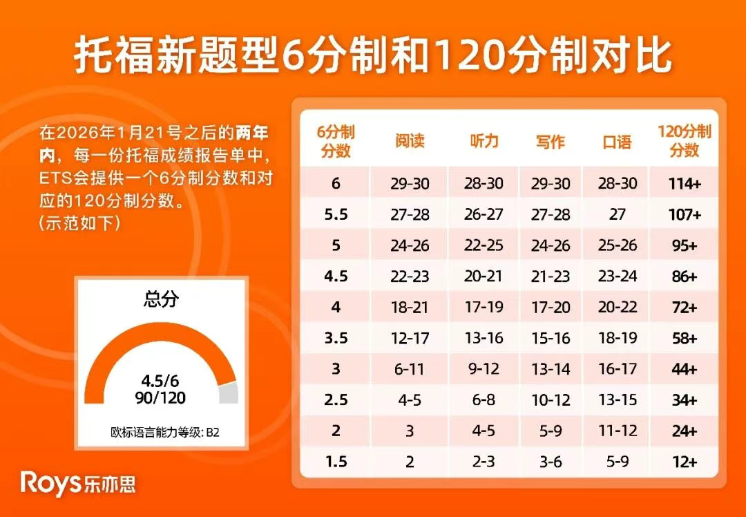 这次托福iBT考试有了不少核心变化。考试变成了“自适应模式”,评分标准也从原来的120分制调整成了6分制。