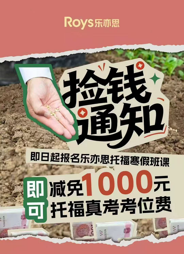 即日起报名乐亦思托福寒假班课,可免1000元考位费!这简直就是白捡的便宜啊!