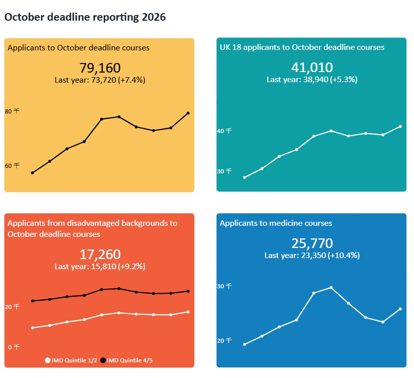 值得一提的是,中国学生仍是国际生中申请人数最多的群体。今年早申阶段,中国大陆学生提交了5,750份申请,同比增长15.7%。将时间线拉长至十年,这一数字更是增长了236.3%,显示出中国学生对英本申请的热情空前高涨。